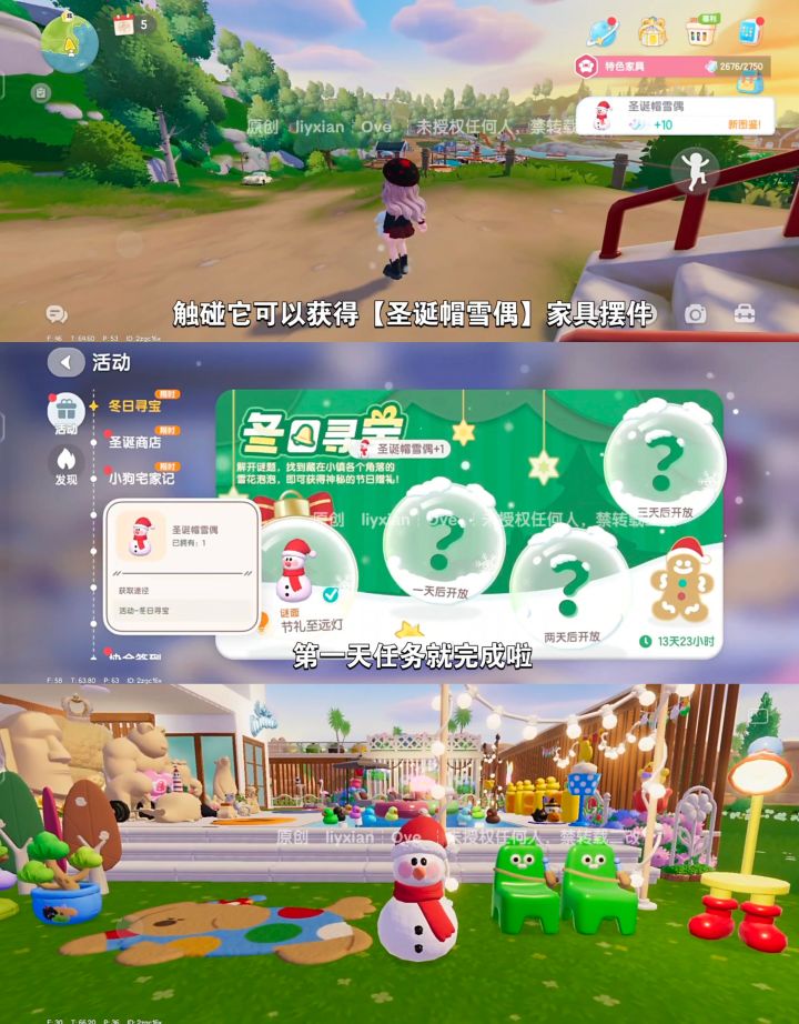 第一天谜面:节礼至远灯,找到泡泡可获得限定家具摆件:圣诞帽雪偶