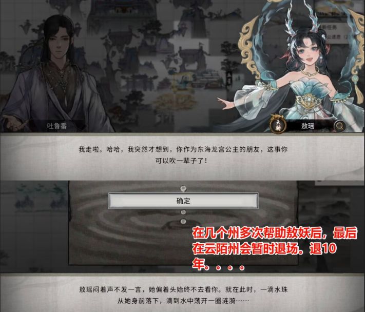 角色介绍:借用河图之力降临八荒的龙女,为了保命与回家四处探索,但她与玩家之间的羁绊让她必须在离开与留下之间做出抉择。