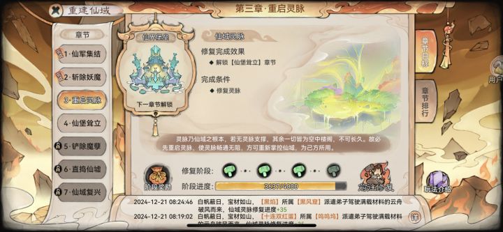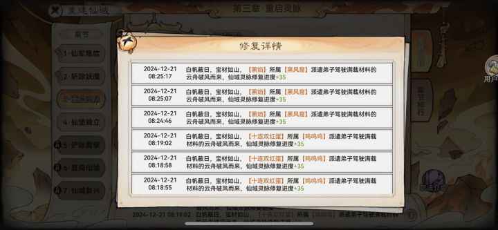 5、重启灵脉:飞升早的道友需要做一个世界任务运输物资,每天三次,需要提交一些1-2阶材料(喜欢乱用材料的道友就要注意了,平时多积累,才能修正果)3次一共给6个古币➕诺干奖励