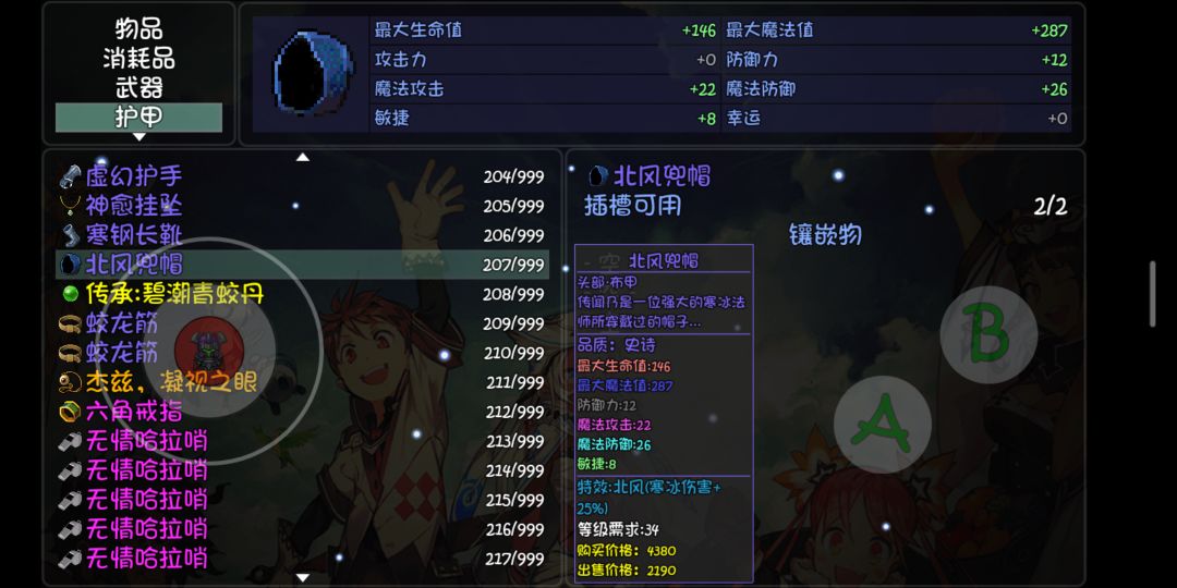 以上几件获取难度相对而言是相当低了,而且边练级的途中顺便就出来,算下加成帽子25+衣服30+鞋子22+腰带20+宝物60+戒指35+项链15,合计207(版本过渡不用我介绍了吧,上版本波涛法师也可以用)