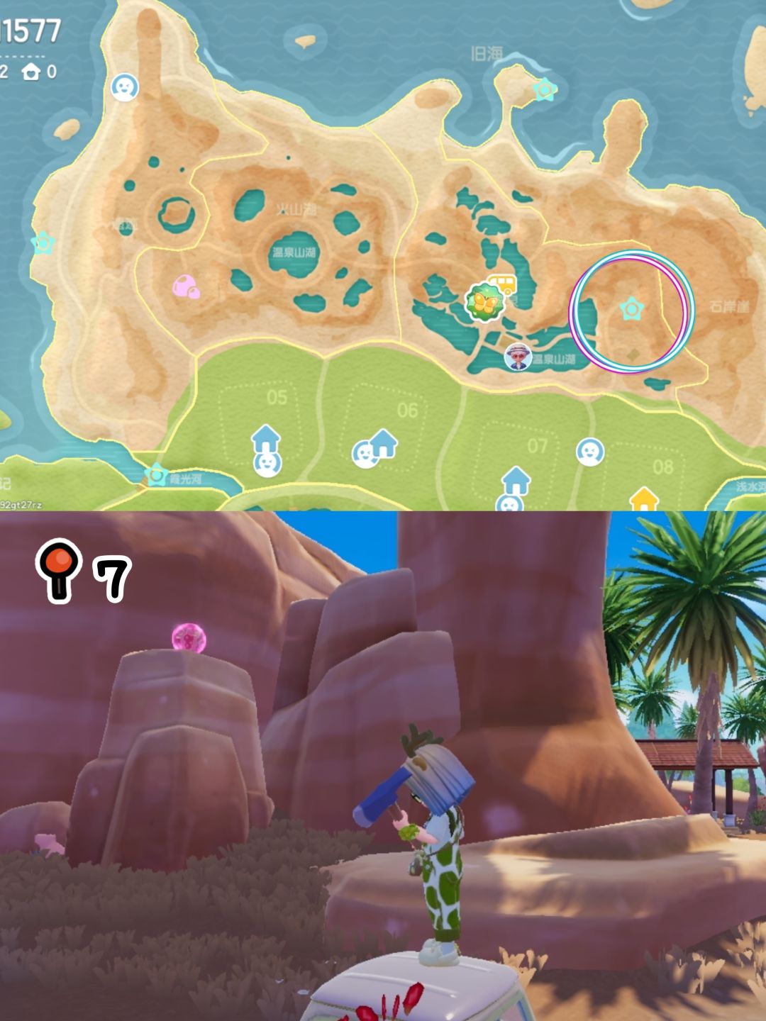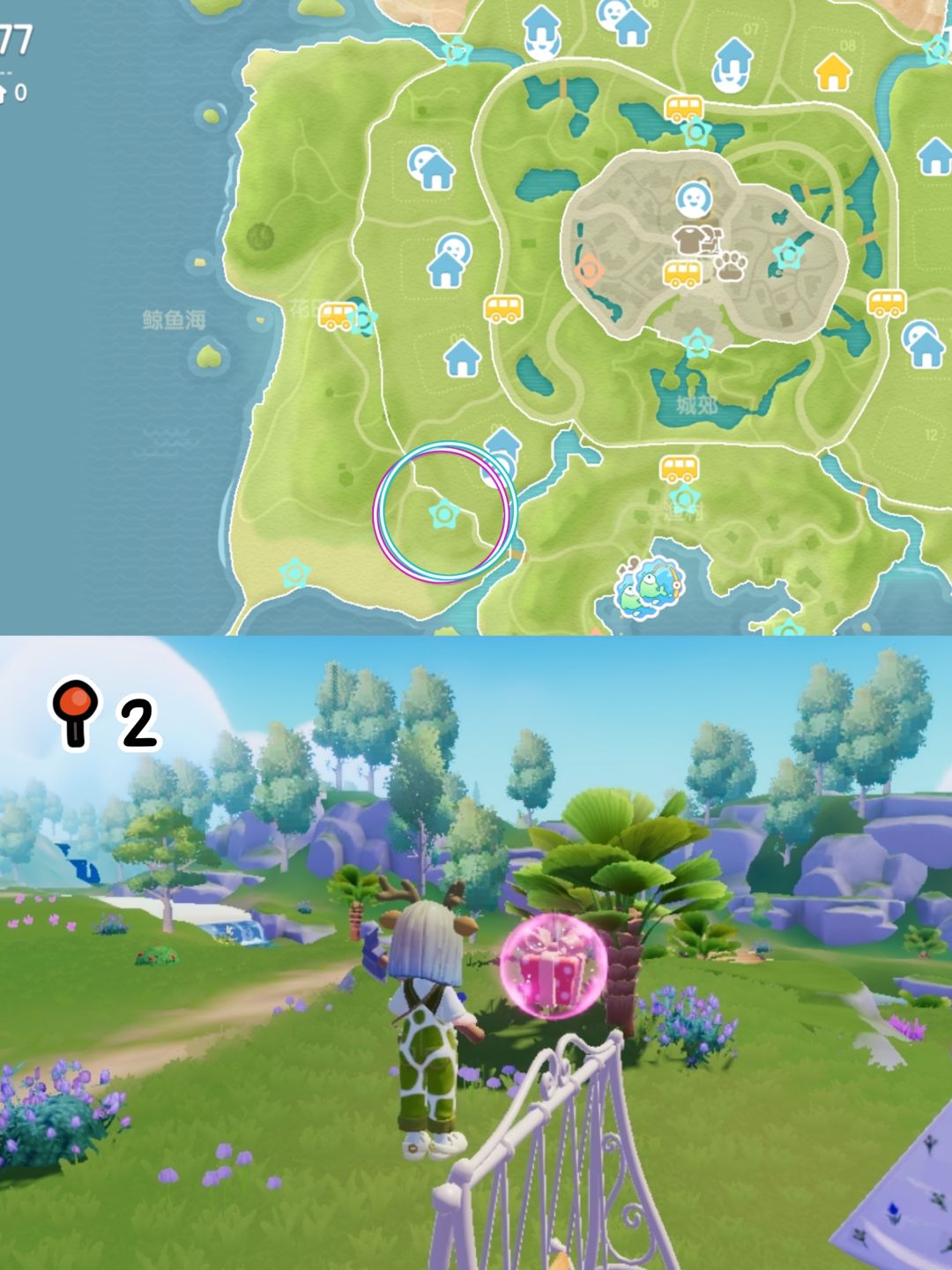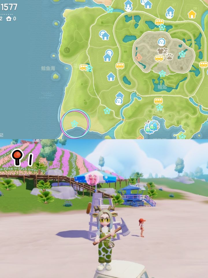 No.7今天是狼:位于花田前往渔村的门牌上(从旁边的山崖跳到门牌上)