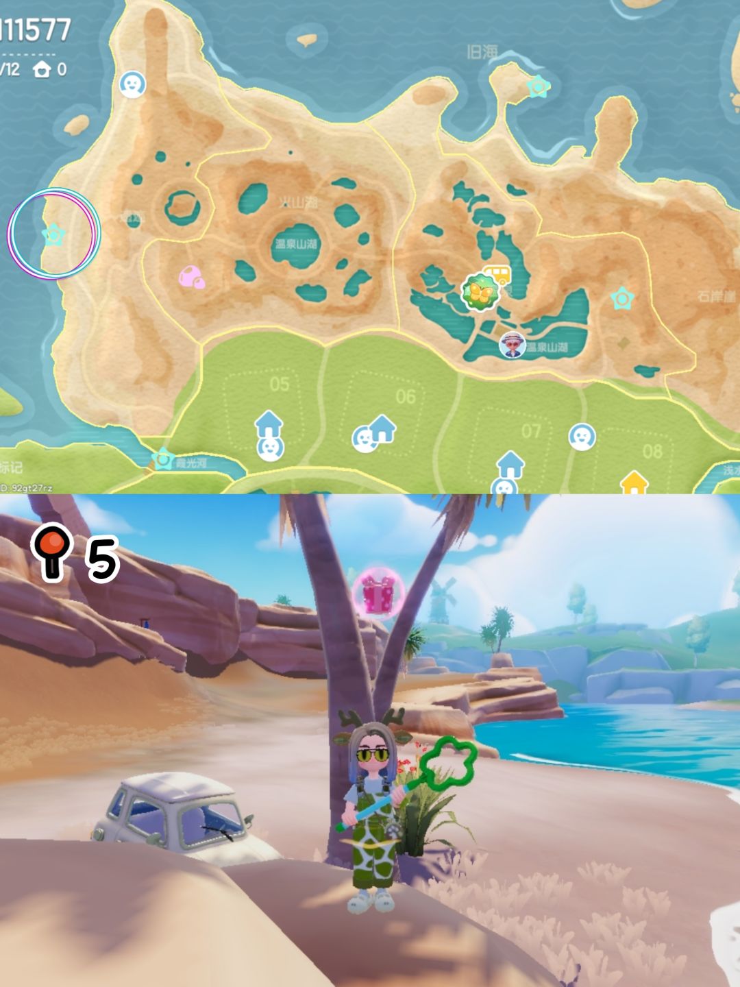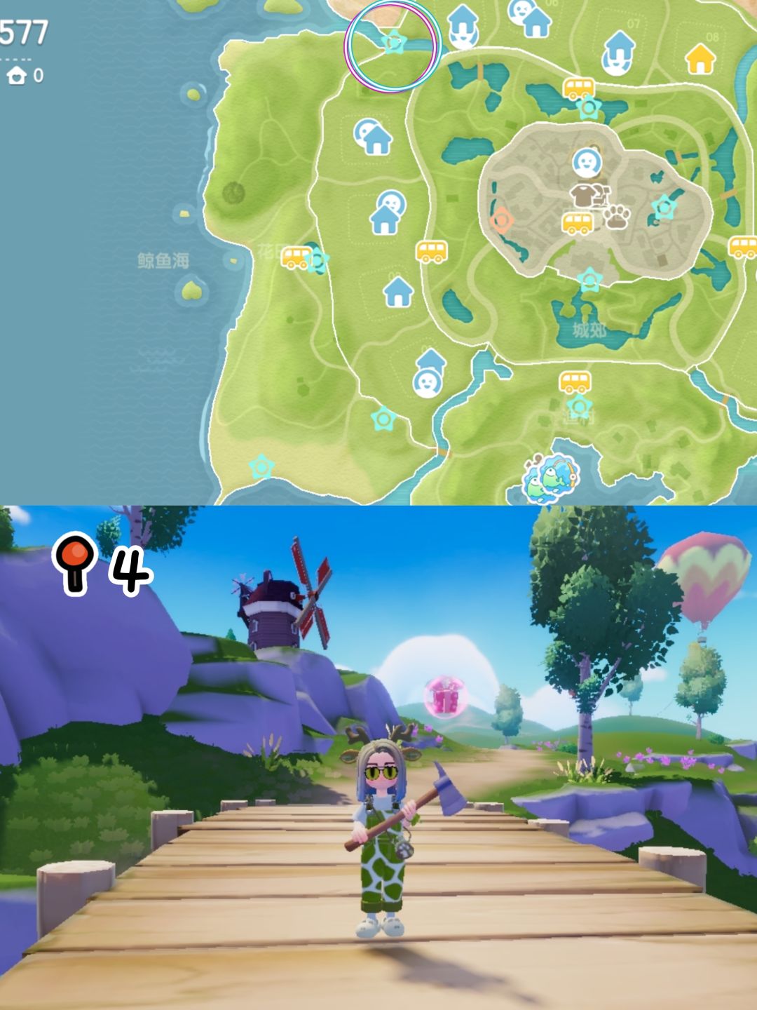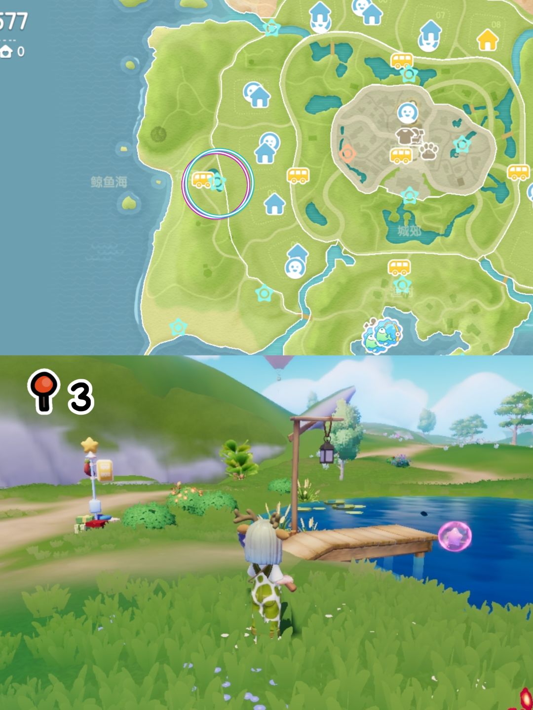 No.7今天是狼:位于花田前往渔村的门牌上(从旁边的山崖跳到门牌上)