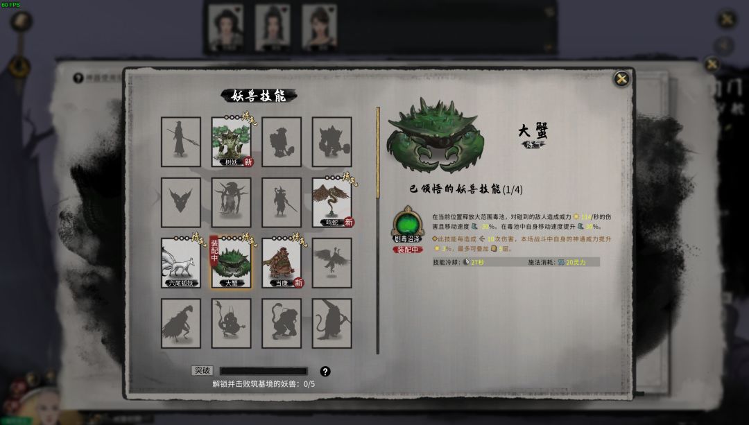 下一步我们开始准备天道筑基所需的材料,分别是六个灵气、通灵秘境的三个妖兽材料。此时我们身上应有橙色穿透清风剑、最低蓝色的绝影剑、加攻击力的劲、护盾的决、风的身法(如果资质不够学习就去宗门买果子吃),而且这些技能的关键词条都可以在接2星妖兽任务时刷出来(没出的直接修炼技能),左上角可以看看每个月大世界发生的情况,如果有什么六尾妖狐(最容易打的)、大蟹之类的妖兽刷新,就去存档打一下试试,胜利后给相应的灵气和一个练气的地道醍醐宝典(直接使用,先将左键拉到筑基期),此刻我们就有筑基的左键,伤害完全超出练气的范围,之后如果看到别的妖兽刷新在灵气区域,直接去打,能够得到第二个醍醐宝典,将右键拉到筑基期(你用醍醐宝典升级的超出境界的功法最多装两个)。左右键伤害都是筑基实力,加上风身法保命,刷通灵秘境的鸣蛇、当康、大蟹是随便打。当然,如果你没打过灵气地的大妖,就老老实实的刷碎片(一般是刷三次就够一百个,因为洪荒材料是双倍爆率)去工坊合成,之后通灵秘境带够我们买的高级回血回蓝丹药,到酒馆喝力大无穷的酒,再多注意下走位(攻击时人物的移速会变慢,所以boss的范围招式最好不攻击跑开)完全不是问题。