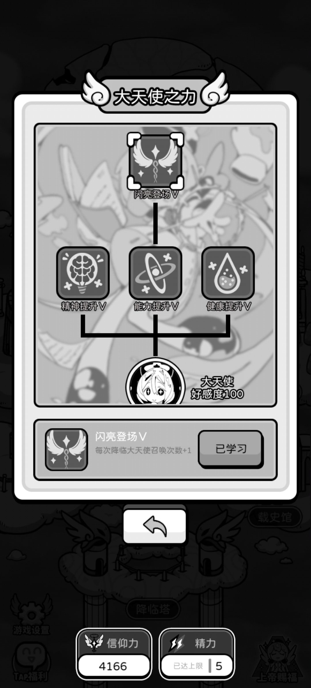 大天使可以让降临人的健康、精神上限抬高,还有额外初始点数。