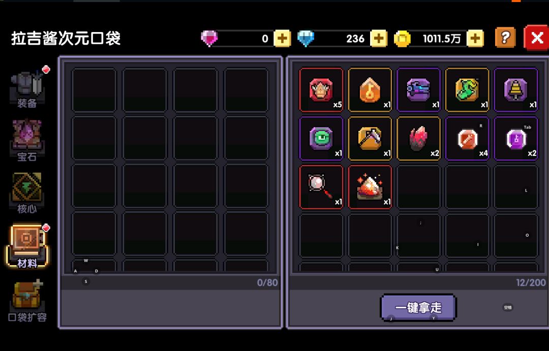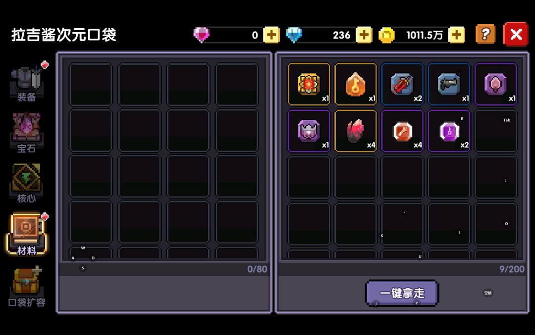 红色钥匙无词条掉落1-2血源矿,+200%词条掉落5个血源矿