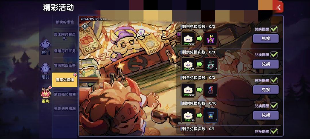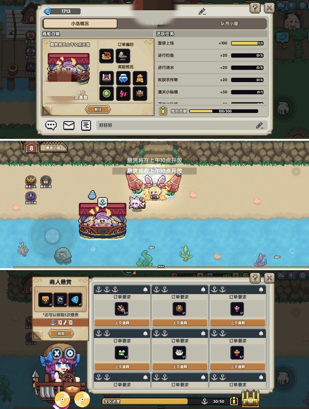 8、勇者小屋里的任务。每天10:00后会出现随机的商船,完成某些任务会有武器碎片获取。