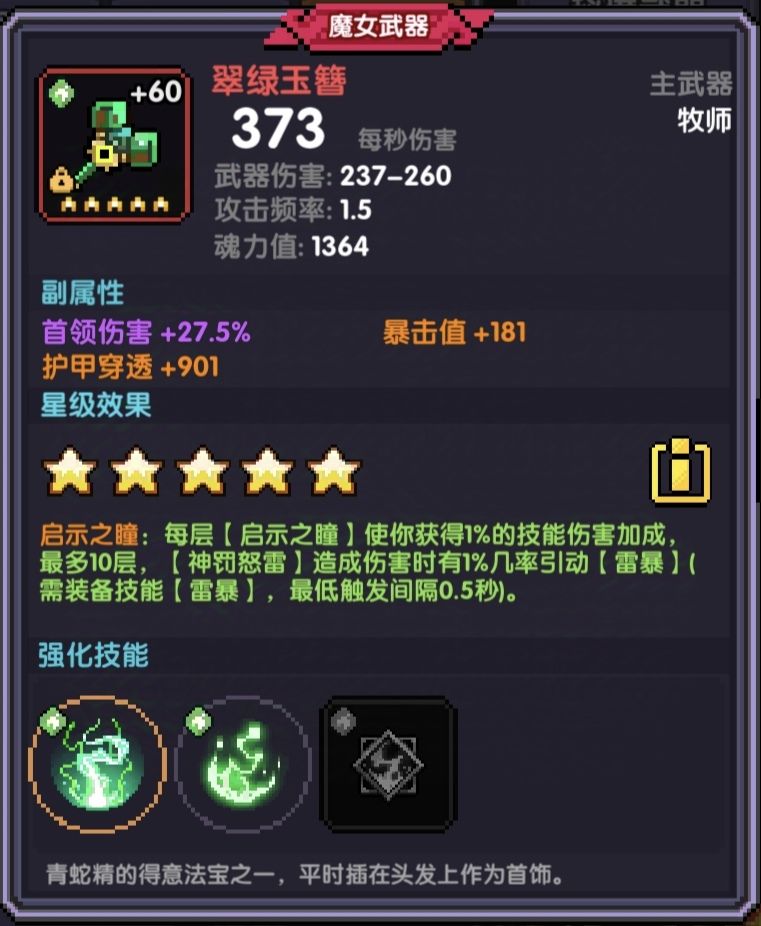 魔女武器:护甲穿透+首领伤害+暴击值/属攻