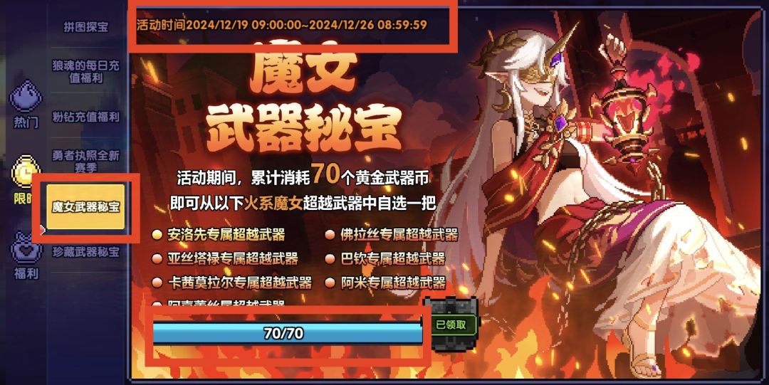 每周70抽免费领取一个魔女武器自选宝箱