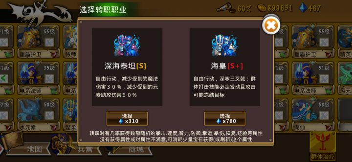 海皇(海神2转)的属性非常强大,不仅攻击范围广,而且血量也很高,配合几只水精灵,一击可以秒一片。