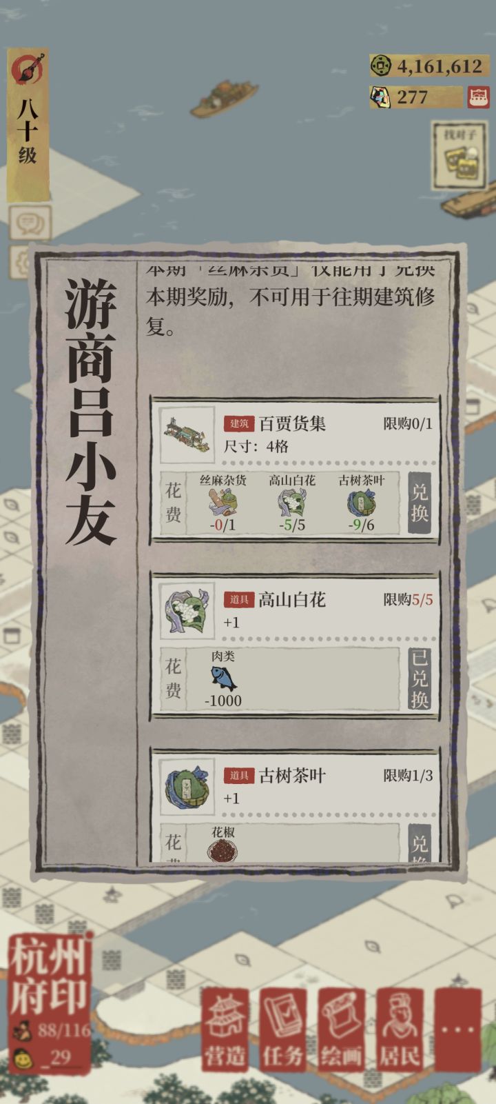 刚做完任务领回来丝麻杂货,正想换百贾货集,却显示数量0,一打开行囊就直接被卖了,太快了我都没看清是50铜币还是10铜币,难道指望我后面花200补天石吗?不,我没有石头了