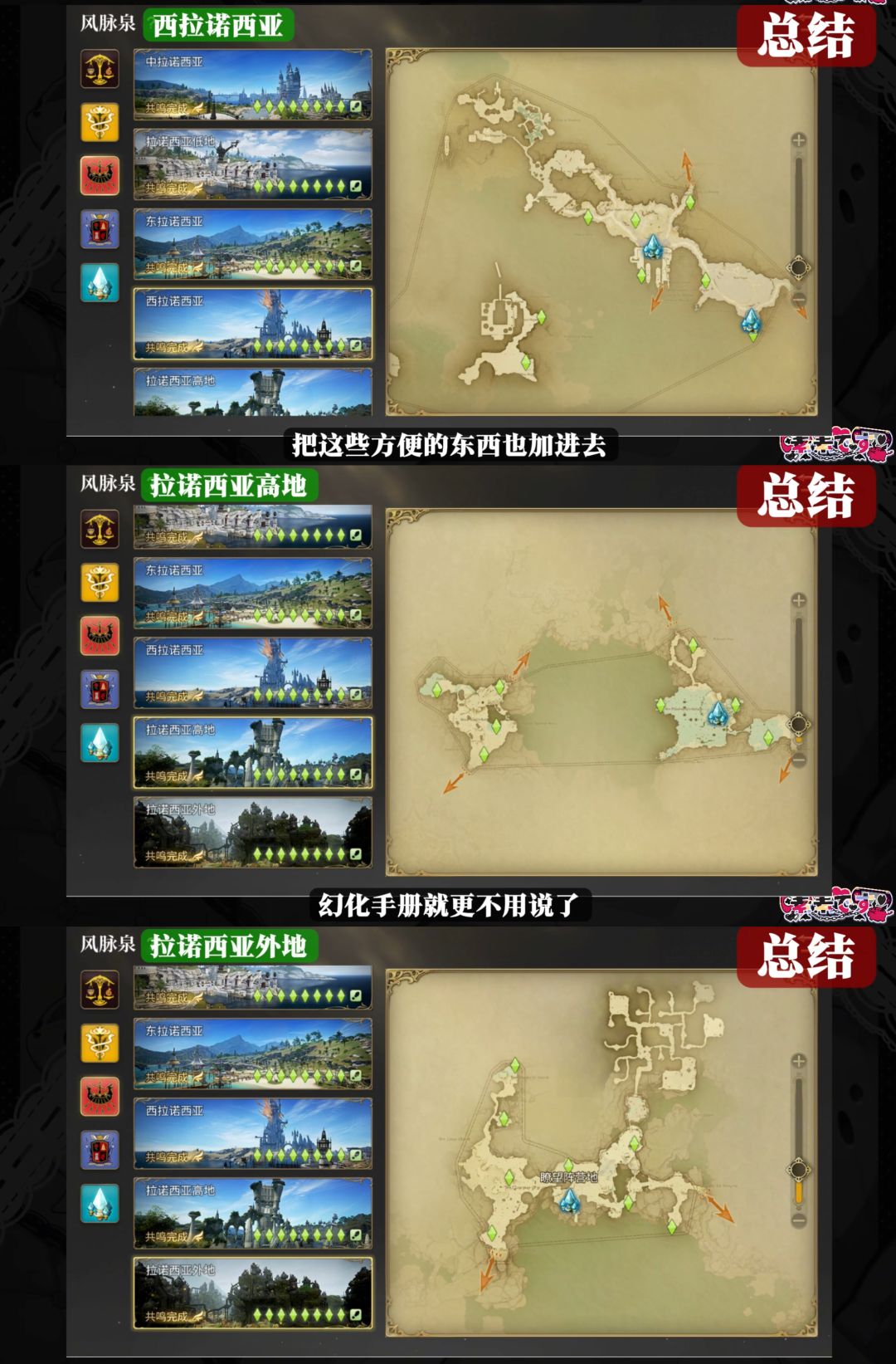 最后附带一下素素整理的各个地点的风脉泉位置! 还是挺全面的