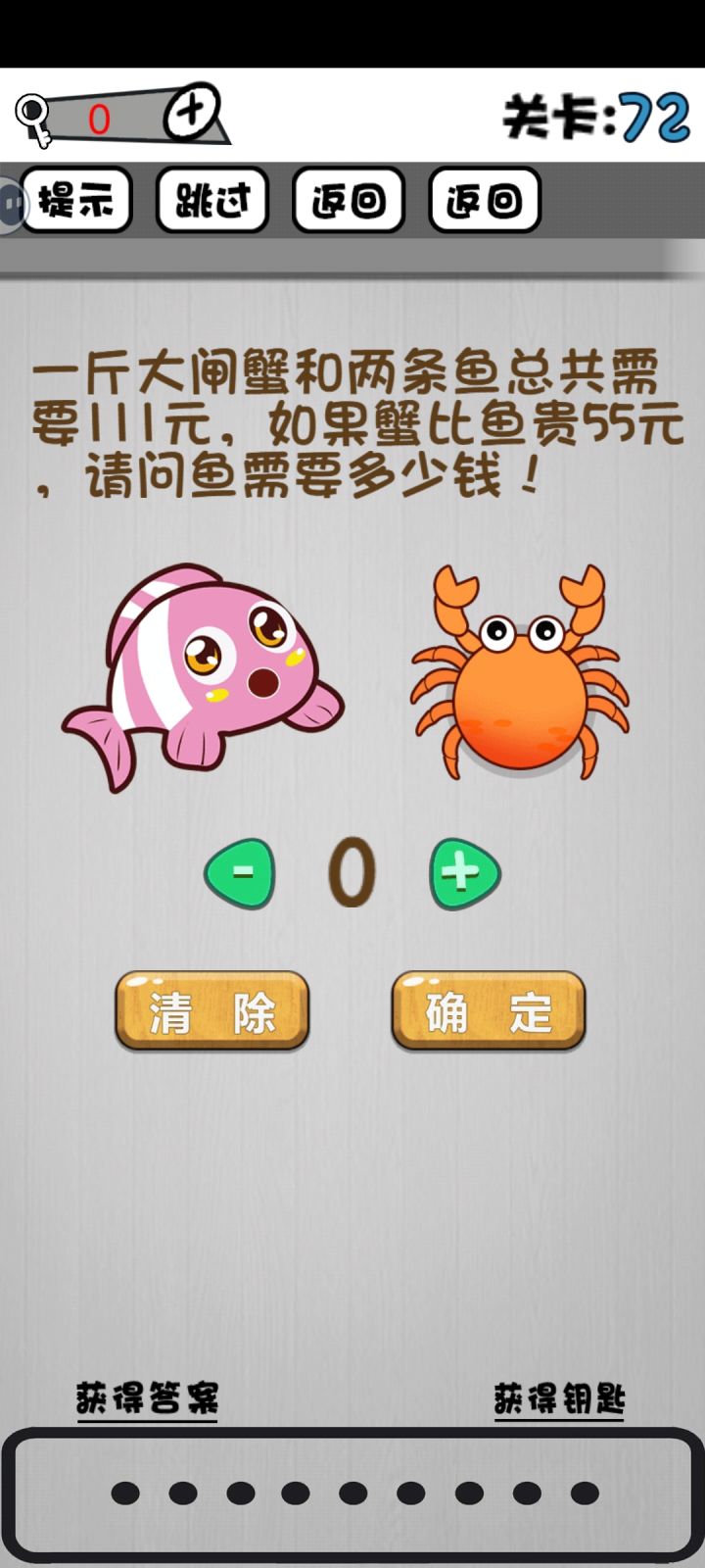 应该总共花了112元才对,贵55就相当于多花了55,112➖55=57,买了3样东西57➗3=19,19➕55=74,蟹=74,鱼=19,这样题才对