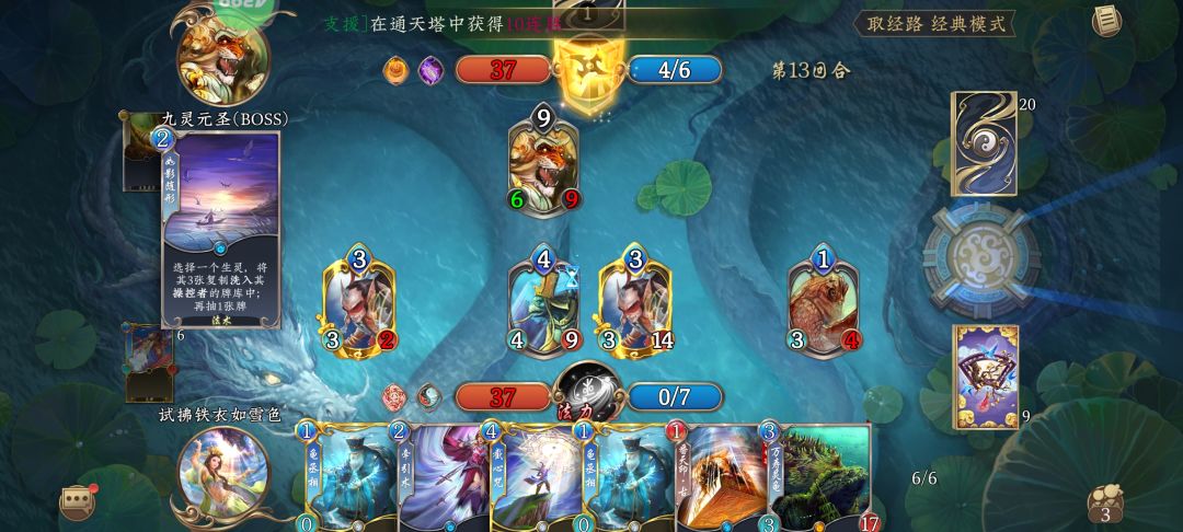 另外,有些装备比如昊天塔、炼妖炉的抽牌效果也会在咱们回合触发,包括元神的受伤抽牌(元神:你就专门打我得了呗