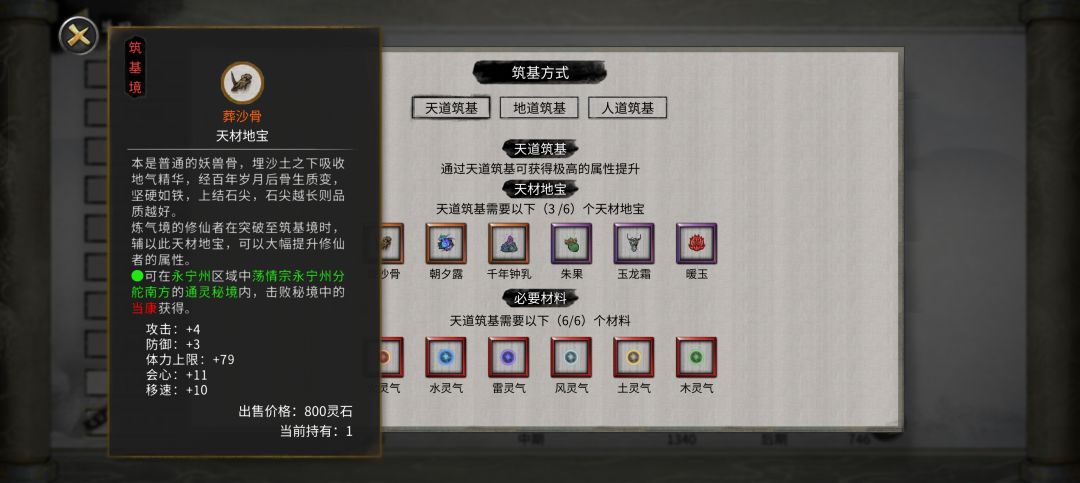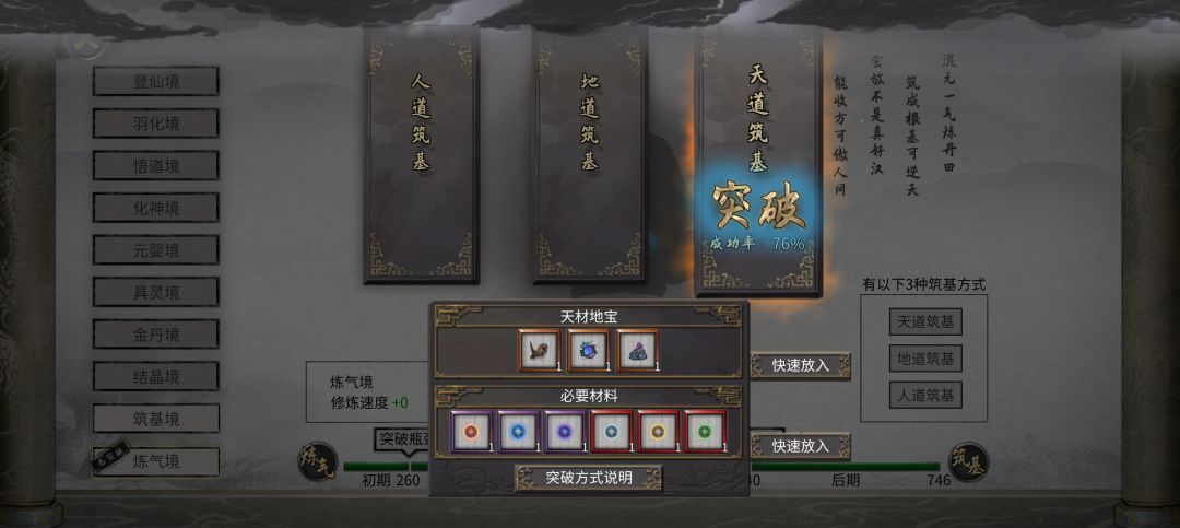 追求极限,要3个金材料天道,灵气不重要(只影响成功率)