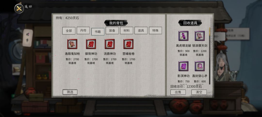 0元购丹药、功法→卖→灵石