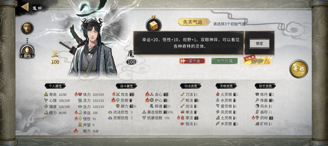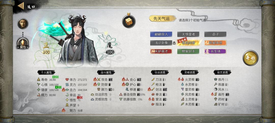 刷悟性、幸运、攻击和天赋