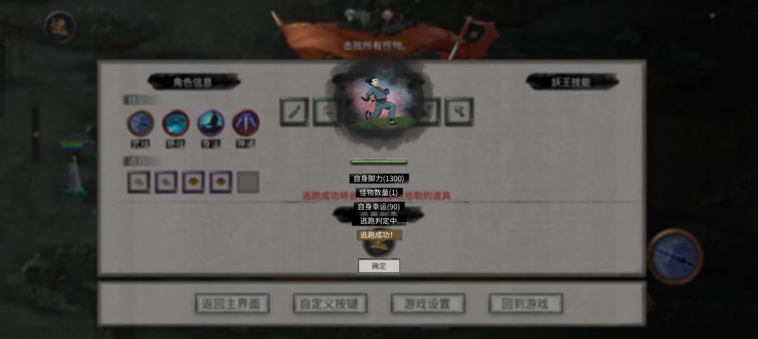 不想打小怪,可以留一个,点逃跑