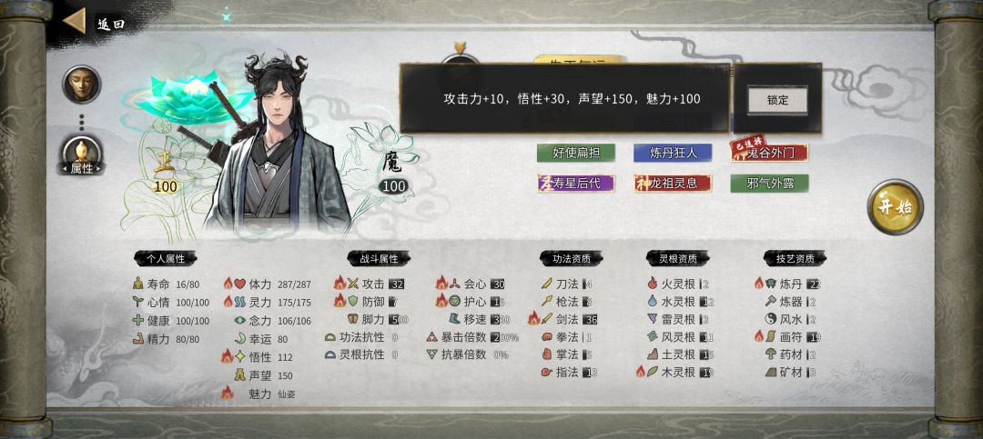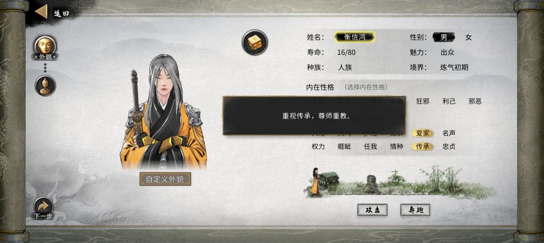 性格不要选“情种”,会影响有忠贞性格的NPC结道侣