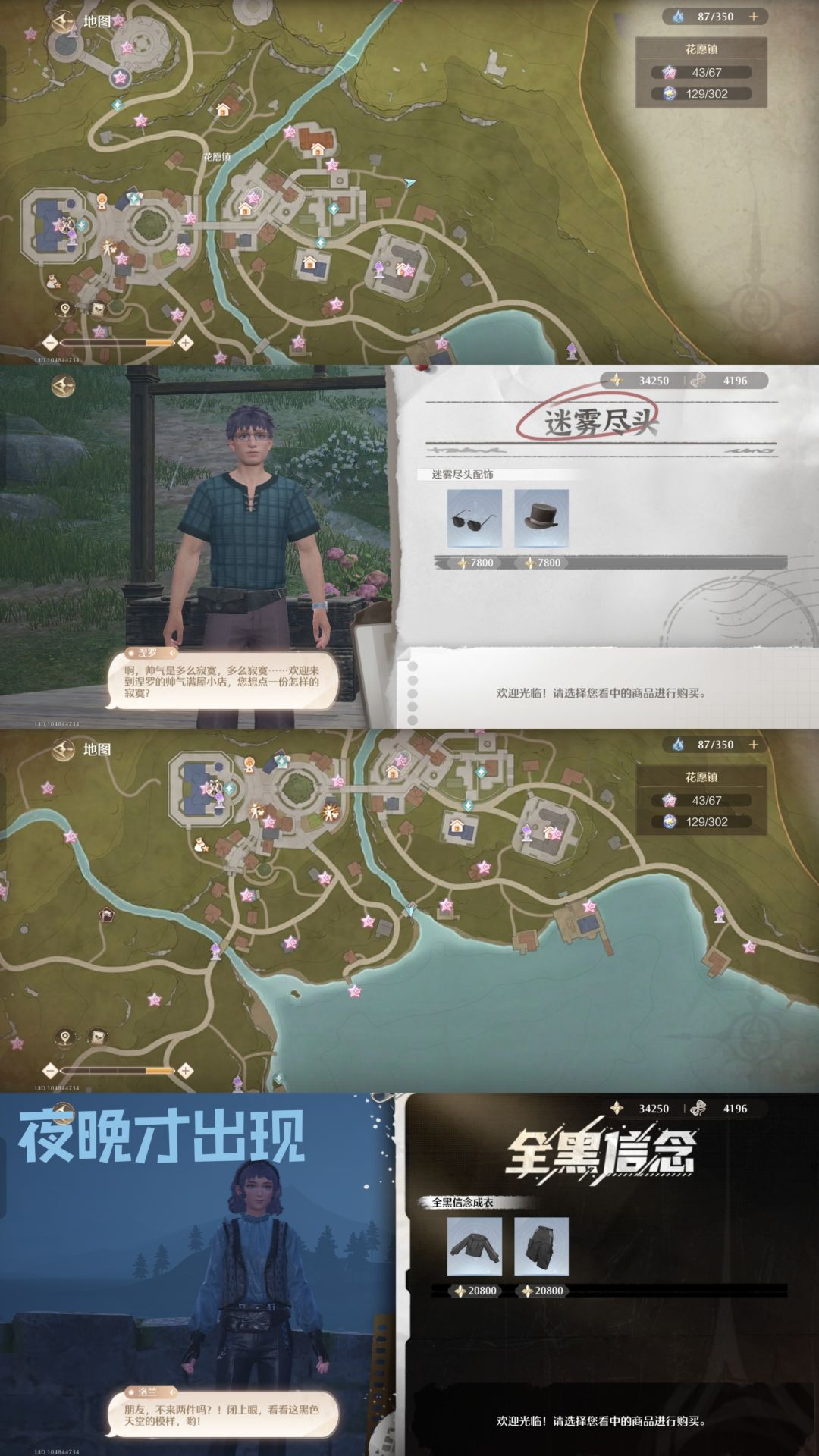 商人主要分为服装和设计图材料以及奇想星,目前点位共36个(欢迎大家补充)