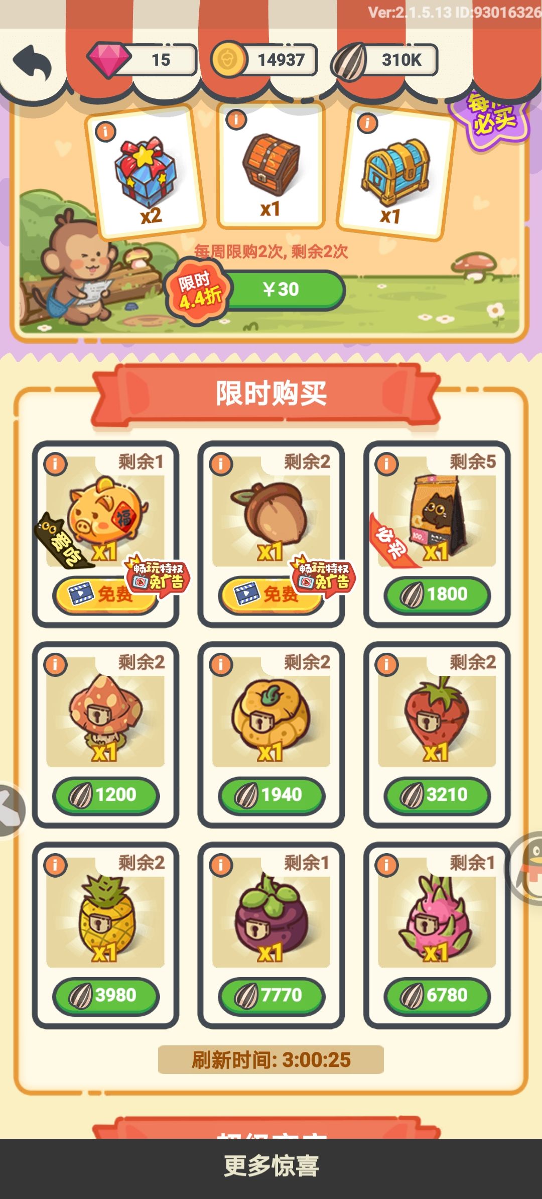 商城限时购买页物品固定,可使用瓜子币购买的物品在购买完次数后,可使用广告额外获取一次,本身就需要广告获取的,看完次数后直接到本日获取上限。刷新时间为每日0点。