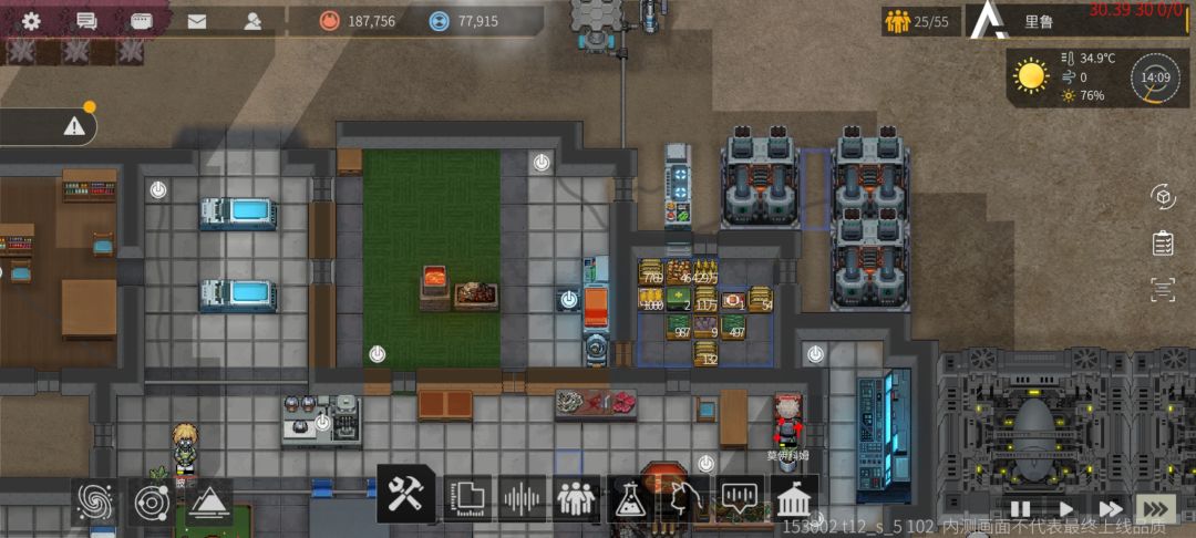 开局落地后,做的第一件事便是拆墙,如图,只保留边上的初始卧室,以及克隆室,其他的内部墙外部墙都可以拆掉,可以获得初始大量的铁,前期不会那么缺矿,同时房间内可以保持零度以下,这样前期就不用担心人员太热,后续的工具台也全放在这个房间内。