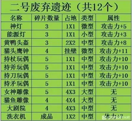 F处:机器放置处 把机器都放进来吧,所有生产型机器都可以(火力发电机、烹饪锅、烧烤架、古物修复机、武器强化机,晾晒架等不行)(晾晒架可以晾晒苹果获得苹果干,百分比回体力的好东西)