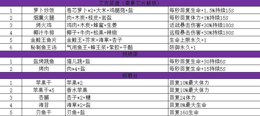 烹饪锅(一共43种菜谱)+艾克(6种菜谱)+烘烤架(2种菜谱)+晾晒台(5种菜谱)