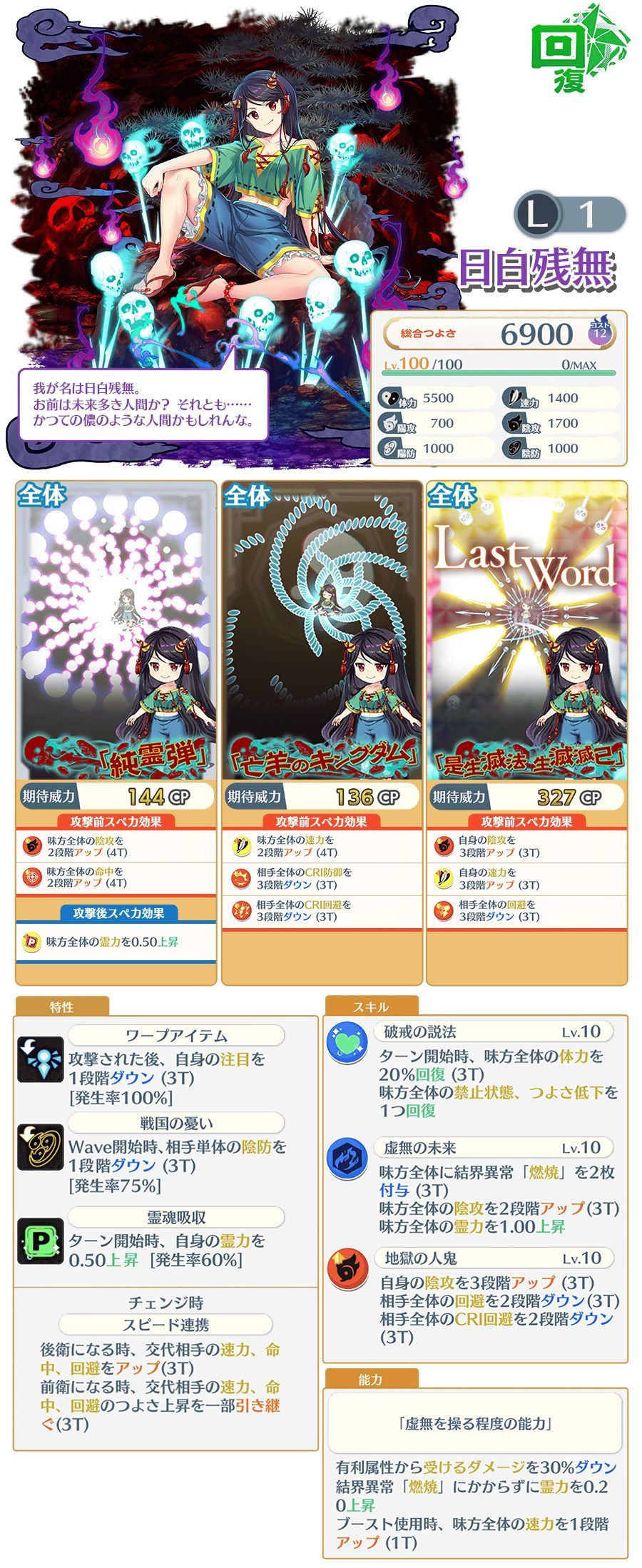 特攻:巫女、鬼、幽灵、妖兽、兽、人类,6段有幻想乡