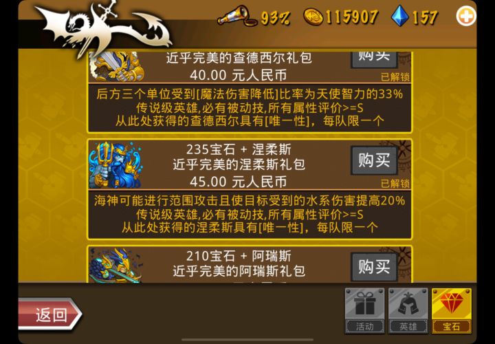• 1 级 - 微氪:买两个 30 礼包,约一个半月通关,少量投入可改善前期体验。