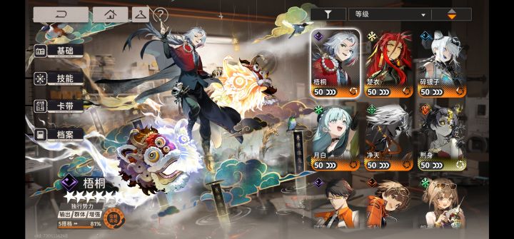 梧桐自身技能带20%暴击,用无主卡带自带26%暴击,四张卡带词条可以有12个位置洗暴击6%属性,其中9个位置洗暴击率=54%,那么在没有辅助角色的情况下,暴击率就100%了。而碎银子作为主要上毒的角色,只要把攻击尽量洗高就行,剩下两个位置其实不用上专业拐了。楚衣作为大概率延长一回合毒的作用其实是很大的,她奶量又足够,另一个位置是否可以上骐骥,因为他能施加很多的debuff,有效减弱和控制怪物的同时,还能保证毒被梧桐结算清掉的情况下,楚衣奶量大幅下降的问题,另外他只要站场就能给楚衣、梧桐和自己施加10%的攻击和防御,而且骐骥的超限技伤害还是可以的。以上都是个人想法,不喜勿喷。