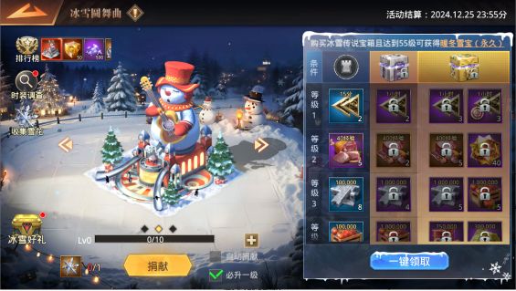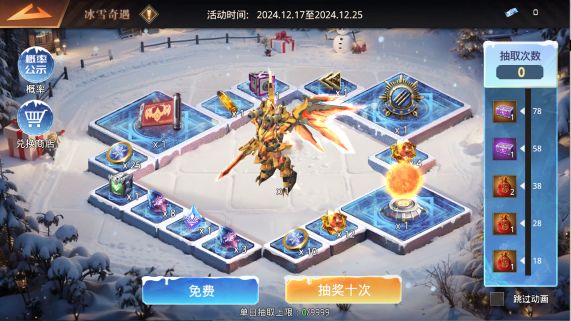 参与冰雪奇遇,有机会获得限定行军特效——寒晶雪舞、暖冬头像、聊天气泡!1.参与活动,购买抽奖券抽进行抽奖可获得珍稀养成材料与限定时装