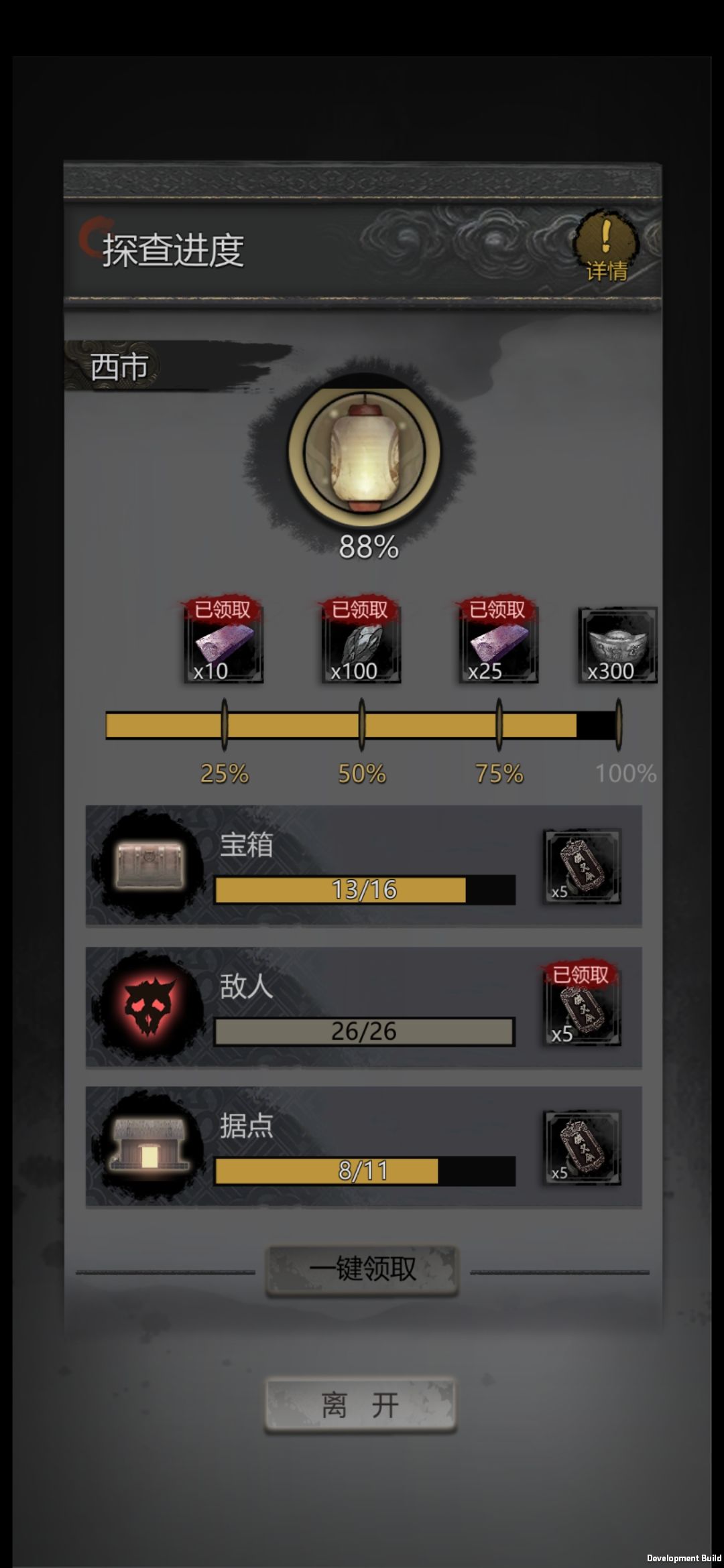 探案路上,好礼相伴~测试进行至第五天,不知道有多少大人已经成功通关第一章,勘破这迷局的开端了呢?晒出自己的主线第一章-西市 探查度100%截图!即有机会获得章节通关礼包哦!