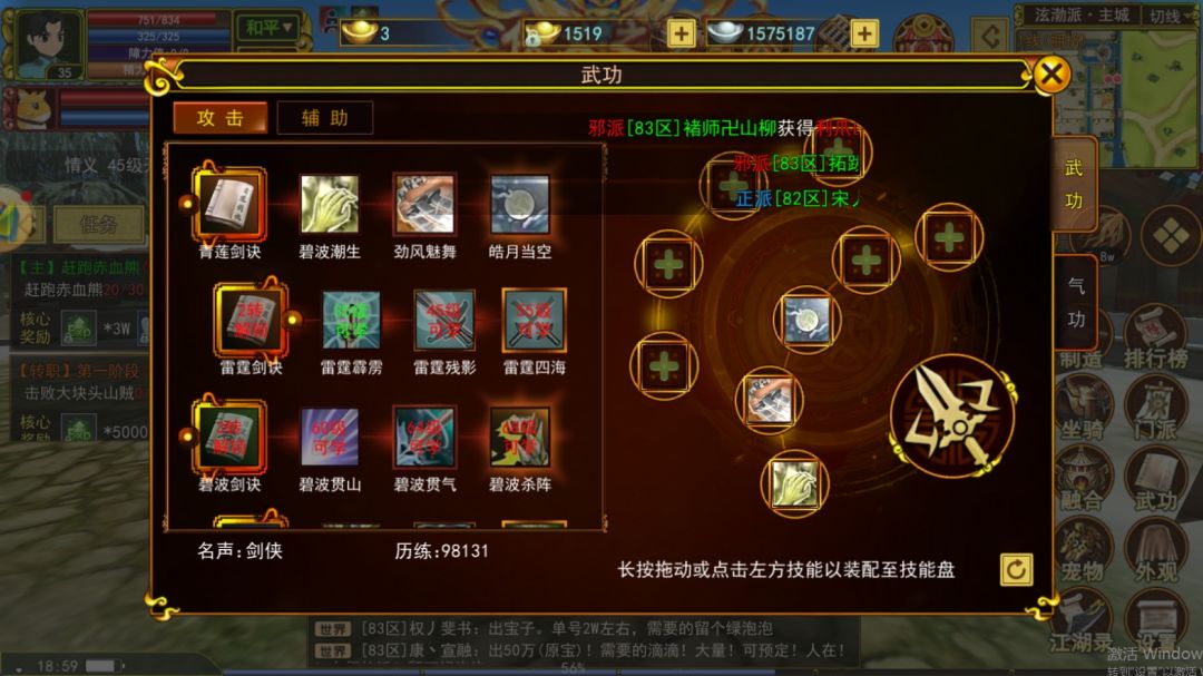 • 主动技能:优先升级“剑气纵横”和“破空剑”,这两个技能具备较高的输出和控制效果,能在战斗中发挥关键作用。