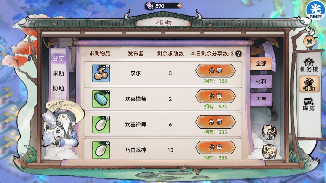 相助大多数情况下都是选择求助玉髓、云精、天灵果。