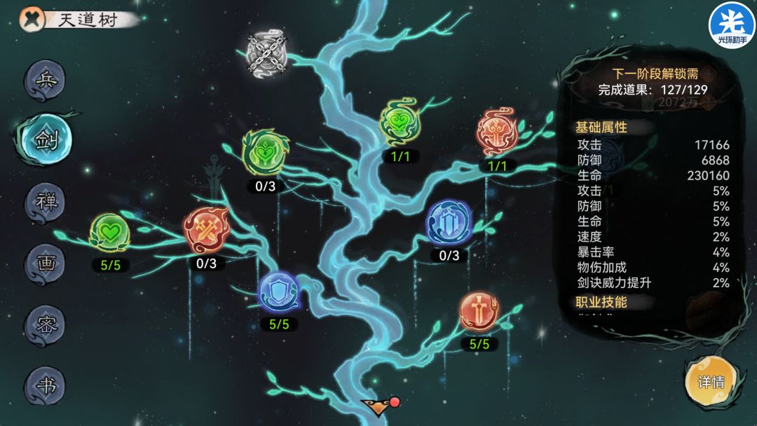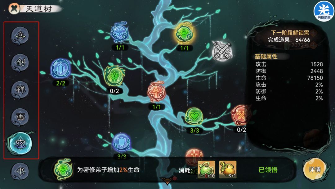 不过在这里我推荐大家先把一队角色所有的天道树都点到64级。