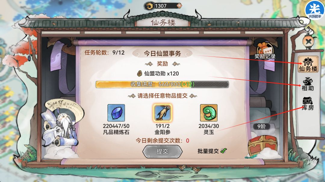 仙务楼中的捐献、相助、库房都能获得功勋,且都是每日刷新。