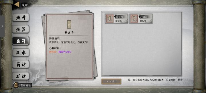 我们一到华封州会学画符,第一个学的就是祁天符,这玩意是好东西,画符材料只要两个精风竹(材料单独卖才16),然而画出来的符一次出十多个符不等,单价高达216,纯纯暴利。画一次符5秒钟,收益3000块,材料在永宁州早就打好了,只要没急着卖,孩子你就画吧。