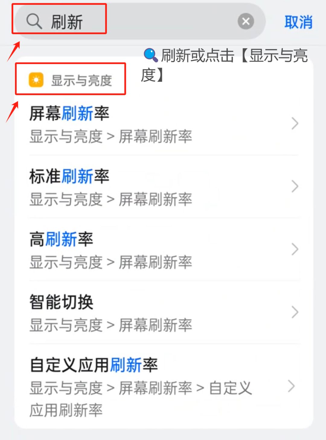 🔍【刷新】-点击【屏幕刷新率】进入。