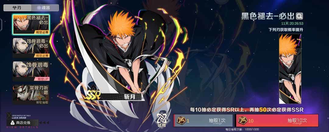 连续签到七天可以领取50抽联动卷,加上tap签到的卷去抽限定黑崎一护,保底的话可以自己垫一些卷
