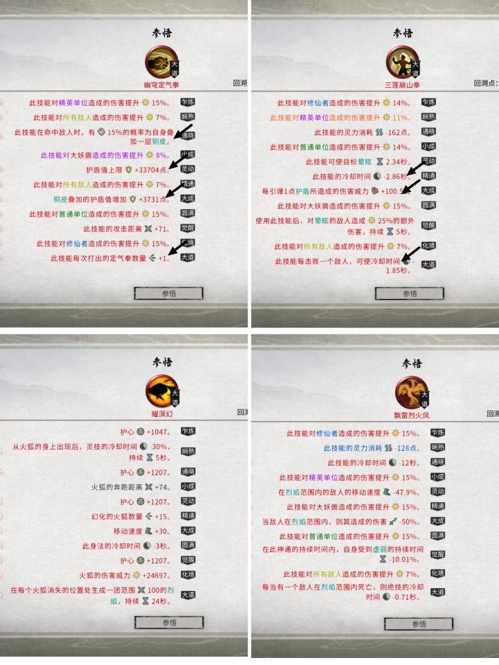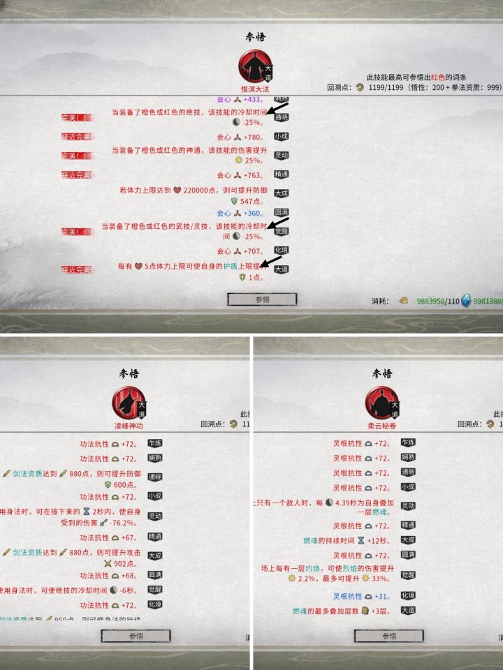 心法选择(已在图内用箭头指出重要词条)①拳大法