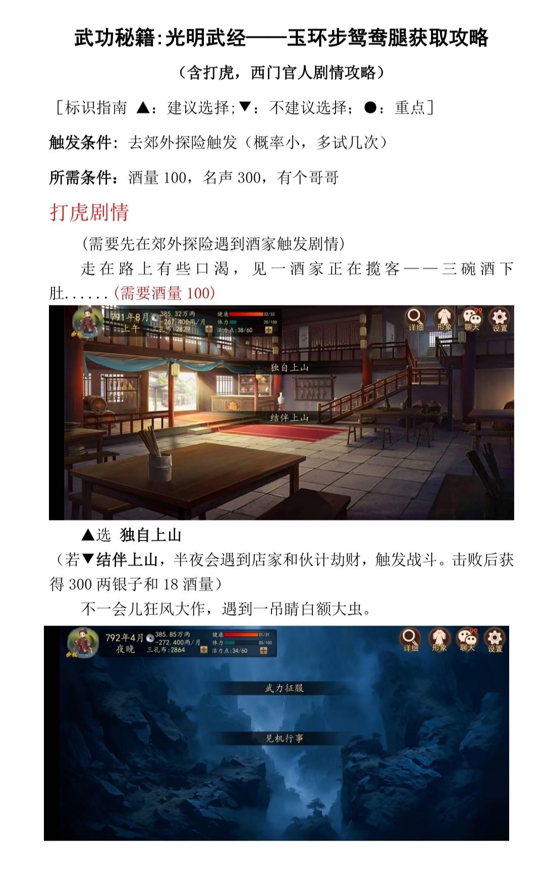 此篇攻略带大家收集一个武功秘籍,顺便把打虎与西门官人剧情一并介绍,详情请看下图。