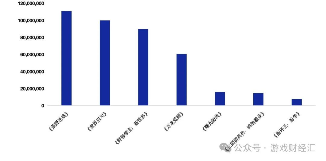下载量方面,占据前三甲的产品分别是贪玩发行《三国谋定天下》、《野兽领主:新世界》以及《无尽冬日》(单iOS渠道)。《荒野迷城》位居第四,《世界启元》位列第五。