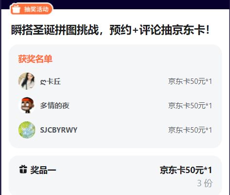 瞬搭圣诞拼图挑战,预约+评论抽京东卡!