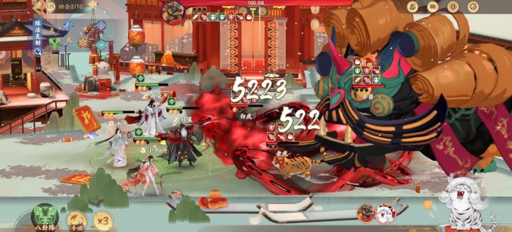 带的大乔小乔,大乔反击伤害全有,还能带出小乔追击,小乔普攻挂debuff,对白色老虎也生效(虽然没伤害但可以凹两个老虎一起死,我打时候小乔很猛,往往黄虎死了白虎来不及杀)。