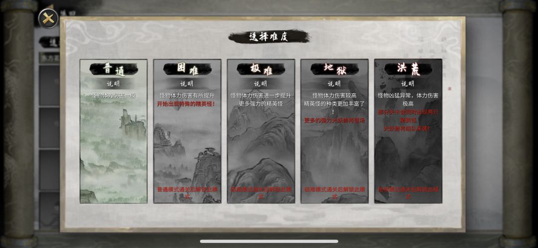 首先是难度选择!上来只能选择普通模式,后续难度需要挑战成功后解锁