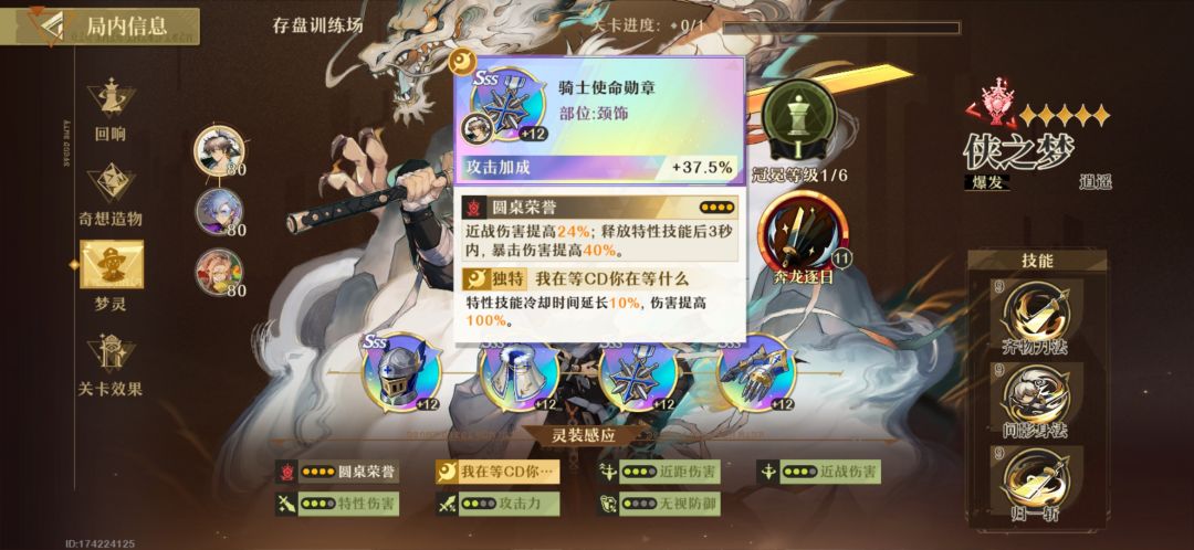 (3).侠的专属回响选择:优先特性加一次数上限,一命可次优先选择钻石级普攻倍率加成,再次为落地释放三条龙。