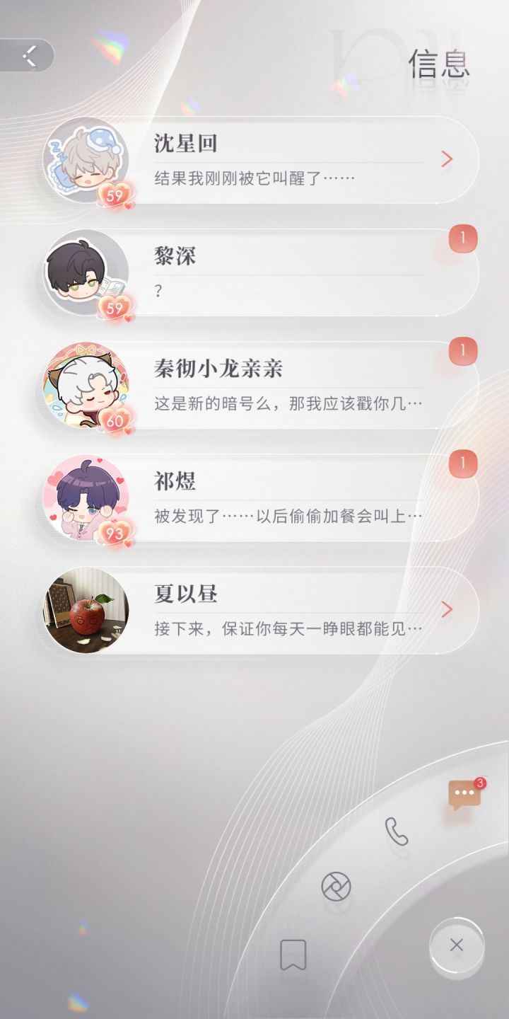 星星是好感度短信,其他男主是戳一戳或其他男主表情包,