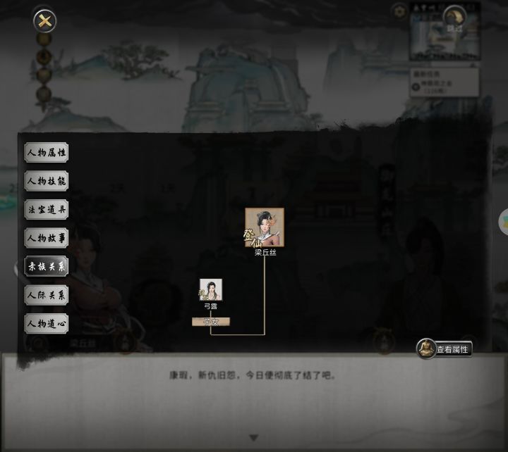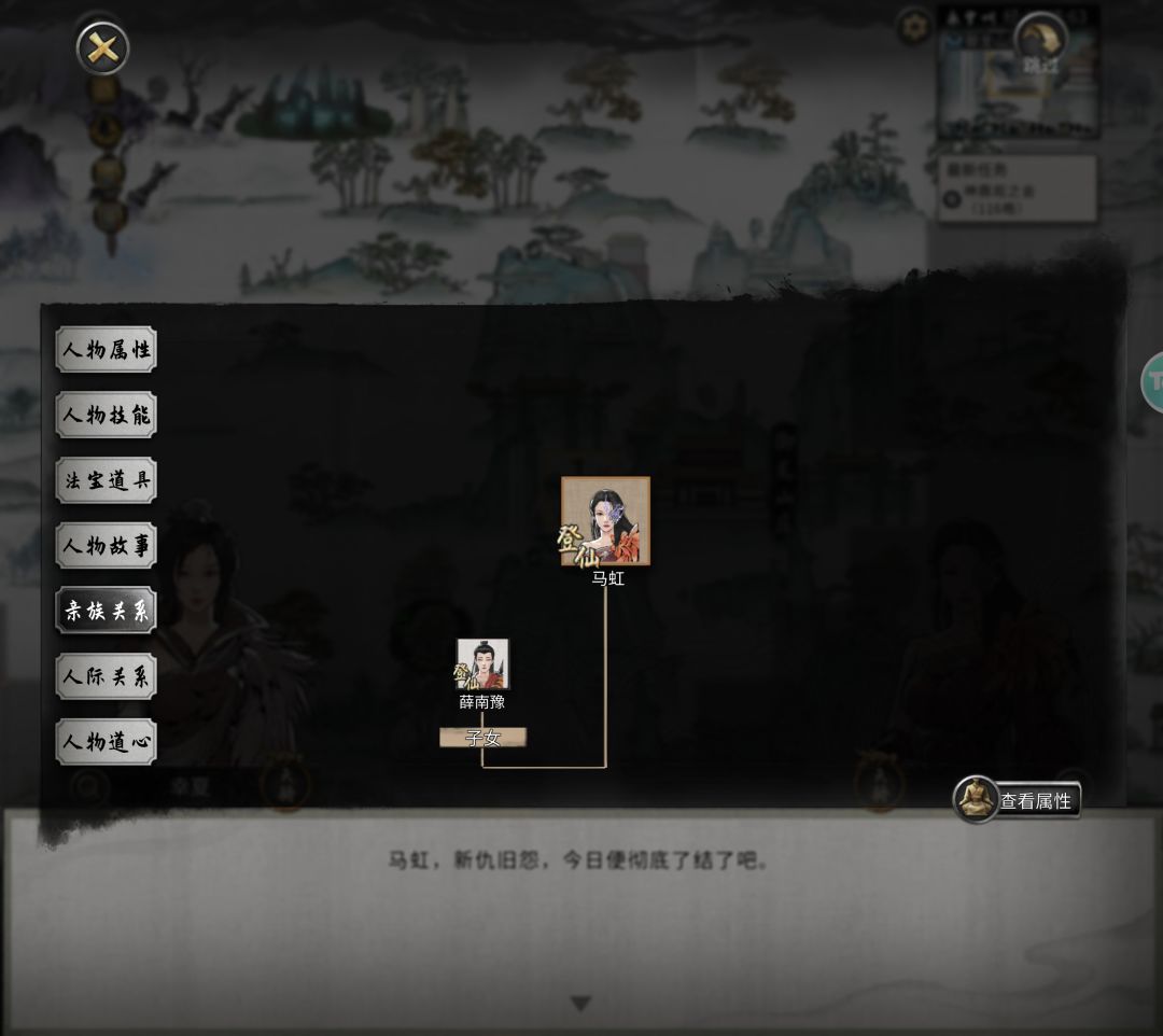 这里整理我存档里的六位师父的立绘和性格截图(名字见对话框内),以及亲属关系。