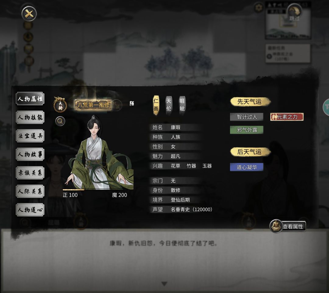 众所周知(划掉),更新后登仙奇遇的师父变成了已生成的npc中随机抽取,不再能无限sl刷取性格词条和立绘。
