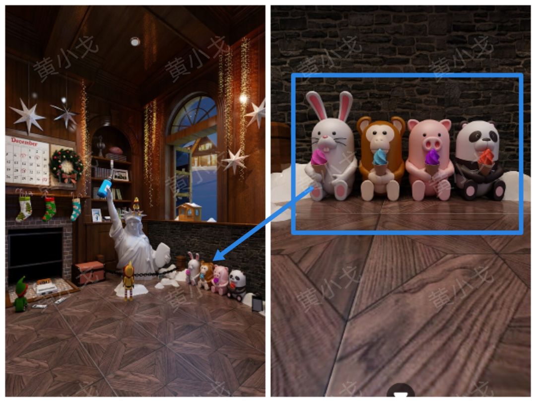 16.点击圣诞树前面的木屋模型,用【钥匙】打开